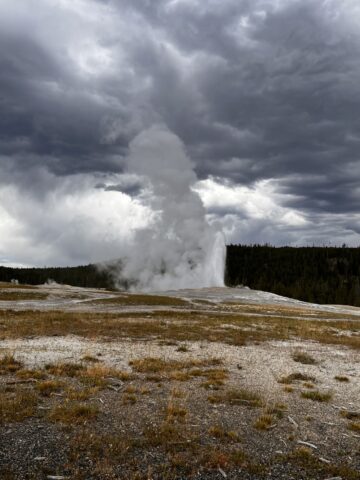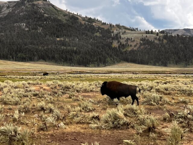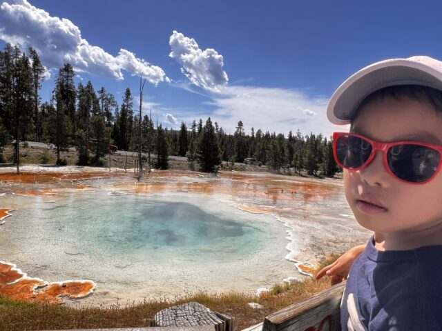 写真は、この夏にイエローストーンに行った時のものです。温泉や間欠泉、湯けむりに硫黄の香り、大分県民である私は「別府温泉」を思い出しました。広大で美しい景色や野生動物などに家族も喜んでいました。昼間に野生のバッファローをみて、夜にバッファローのステーキを頂きました。美味しかったです。