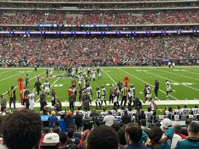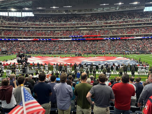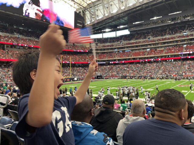 写真は、先日アメリカンフットボールNFLを見に行ってきました。ヒューストンのホームチームであるテキサンズが、終了間際に逆転勝利したことで会場は大熱狂でした。